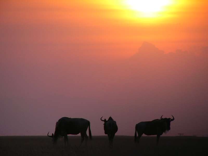 The evening was very beautiful. I drove across the plains, surrounded by many animals, and enjoyed the view and the wonderful sunlight.