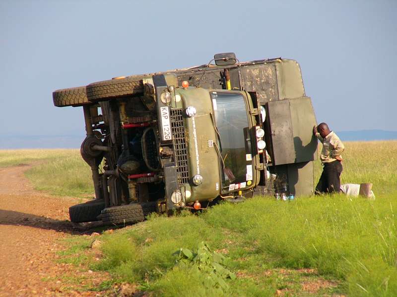 In spite of truly terrible roads, I made it to Masai Mara in time for a late lunch at Fig Tree Tented Camp. Inside the Masai Mara nature reserve, shortly before reaching Fig Tree Tented Camp, I saw a not very happy looking truck driver.