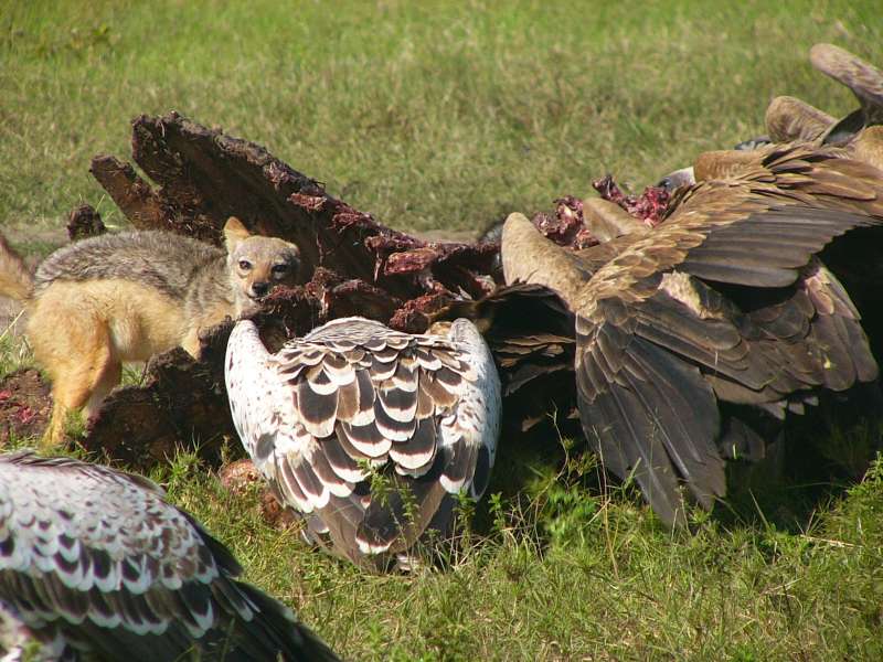 Eventually the vultures moved in and the jackals gave up against their large numbers.