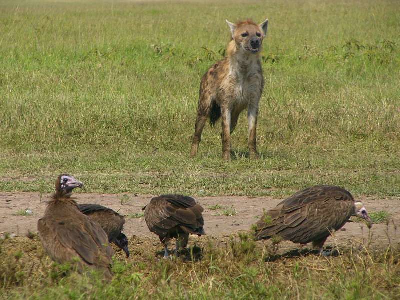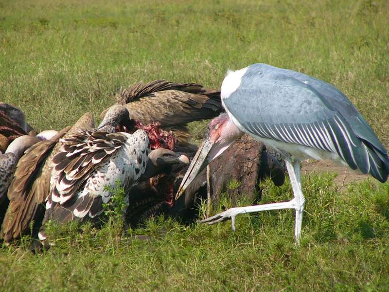 Even a marabu stork tried to sneak in, but the vultures didn't let him eat. He soon gave up.