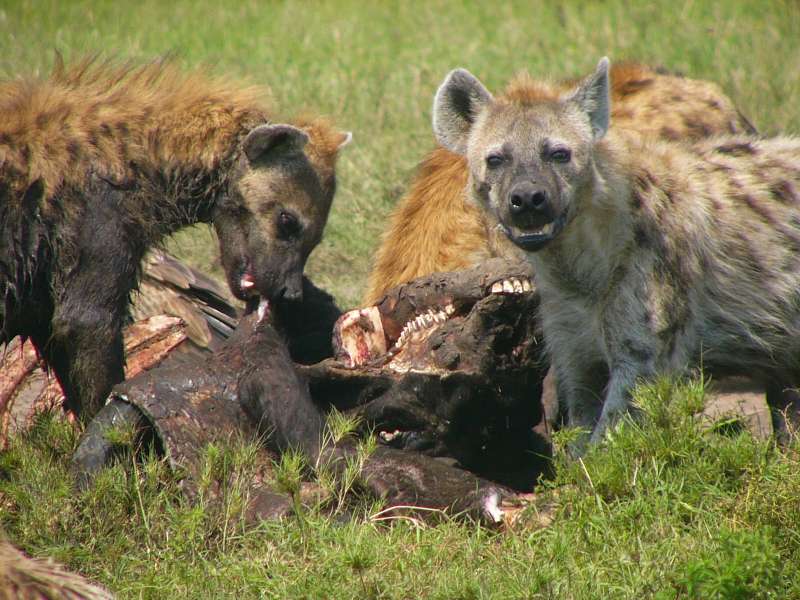 Then the hyaenas came. They are a different kind of specialist when it comes to eating all that's edible. For example, they ate the ends of the ribs and cracked various bones that the lions had left untouched.