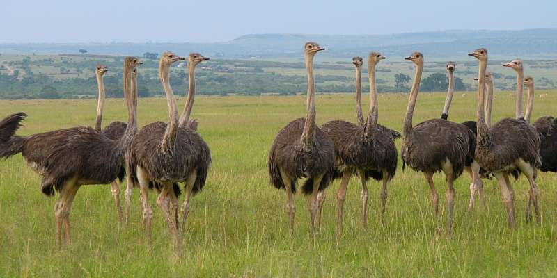 In the afternoon I saw several lions and the usual lot of grass-eaters, including an unusually big flock of ostriches, some of which you can see here.