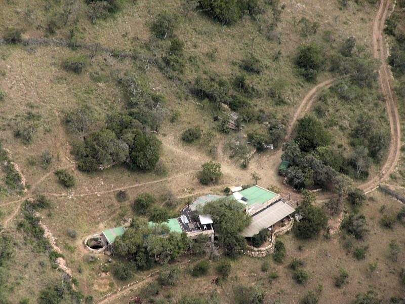 Shompole airfield and the lodge in the upper right background