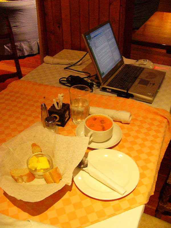 I still like the Aero Club's WiFi Internet connection. It is wonderful to be able to write this travel report while waiting for the soup to cool to an edible temperature.