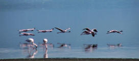 Across the southwestern part of Lake Amboseli; Kori bustard and Thompson gazelle;