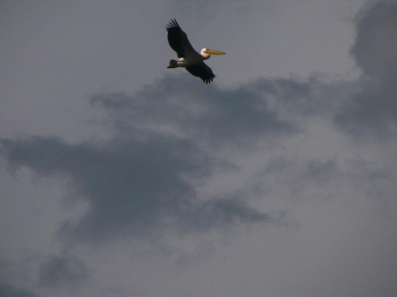 I saw a lot of interesting animals, including baboons, rhinos basking in the morning sun to warm up, large numbers of pelicans at the lake shore and some flamingos, a marabu stork, from which the flamingos kept fleeing (for good reason), two European white storks, many buffalos and several giraffes.