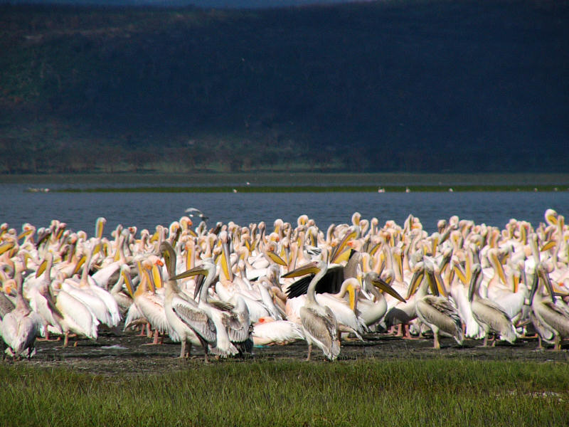 My time in the nature reserve ran out, so I slowly moved towards the main Nakuru exit. Along the way I took some pelican photos.