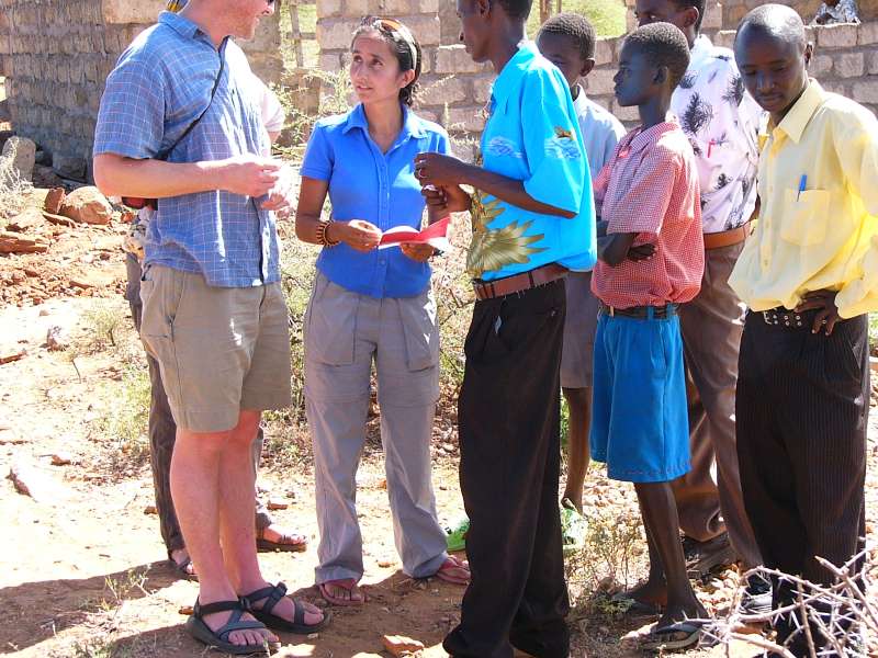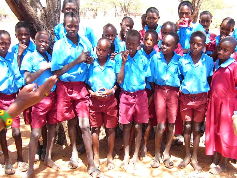 Shivani had started a tree planting competition between three schools in the Samburu area (see white track on the map above, the farthest school was Ngotogongoron past Sasaab airfield in the upper left corner of the map) and some schools in the Machakos district, closer to Nairobi. The idea is to let school kids form groups, each of which plants, waters, and protects a tree in the school compound. After a longer time the trees are compared and the tallest one wins. Another part of the plan is to bus children from Samburu to Machakos and vice versa to familiarize them with the different areas and lifestyles in Kenya. Some photos:
