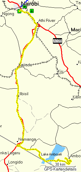 After we had talked about various things for much longer than I had planned, they invited me to a very nice lunch, including self-made fresh cheese. Then I asked for the time, only to learn that it was already 2 pm, so I rushed off and drove through Bissil and Namanga at the Tanzanian border to Amboseli, whose entrance gate (Meshenani) I reached at about 5 pm.