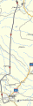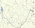 This is a large gravel and grass airfield with two crossed runways. The longer one is 1.7 km long, runs roughly north-south, and slopes up towards the north.