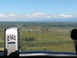 The gravel airfield runs in a north-southerly direction. Beyond the southern end there are some ridges to clear, so be prepared to turn left towards the lake in time if you are not sure you can climb above them.