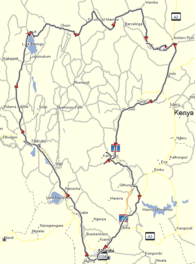 Rather than driving through the totally clogged Nairobi, we drove away from the city towards Langata and Karen and drove a wide arc around Nairobi, joining the Nairobi-Nakuru freeway in the far northwestern corner.