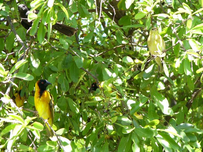 Lunch in the Lake Baringo Club with a hornbill and weaver birds