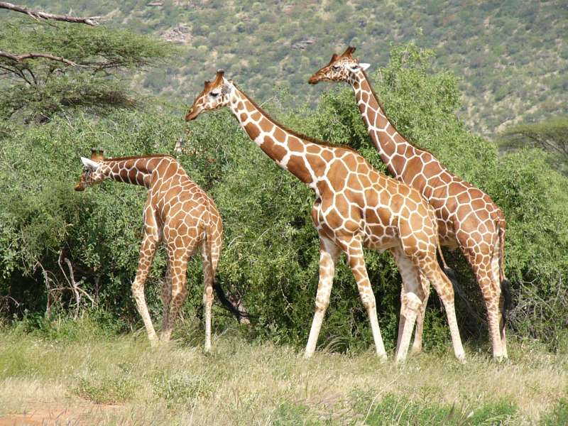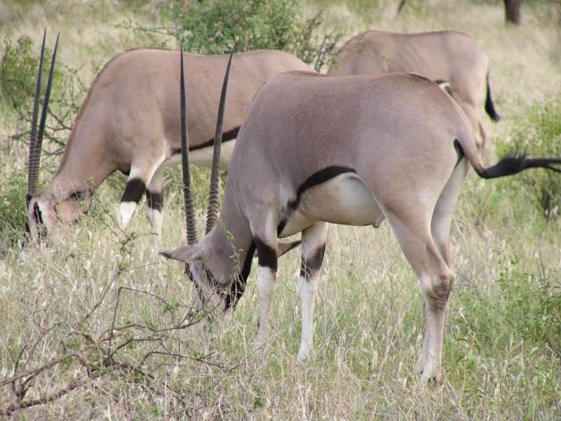 We entered the Samburu Reserve through the West Gate, paid the entrance fee, and continued on to Samburu Lodge. Just after passing the gate we ran into three magnificent elephant bulls. Because of the heavy poaching in the nature reserve, they now tend to stay as far west as possible, away from the area near Isiolo, from where the poachers usually come. As we later learned, approximately 25% of all Samburu elephants have been killed since our last visit a year ago.