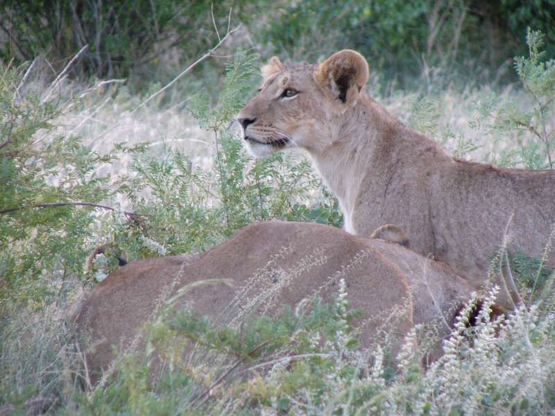 The two youngsters had stayed behind, and now came walking towards their mother or mothers. We watched the pride slowly disappear towards the west, enjoying the feel of the evening, then turned back to the nearby lodge. We arrived just before it would have been too dark to drive without headlights.