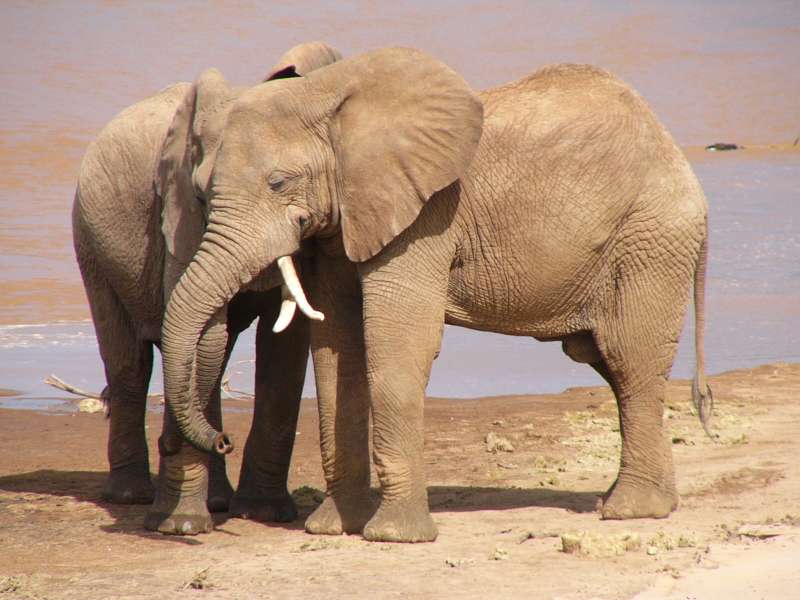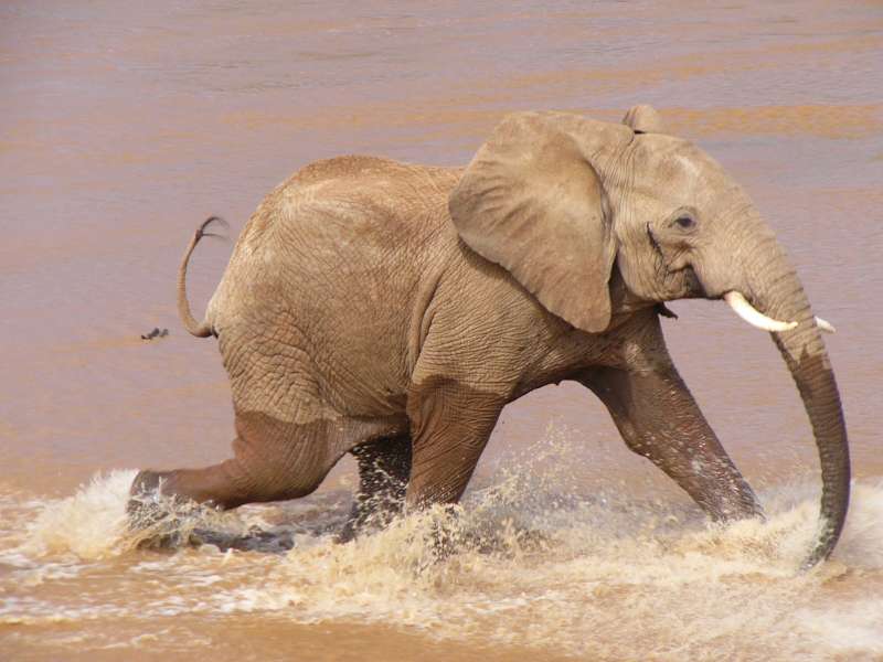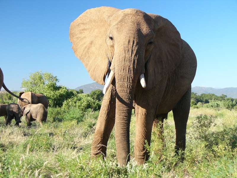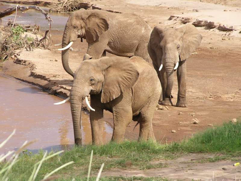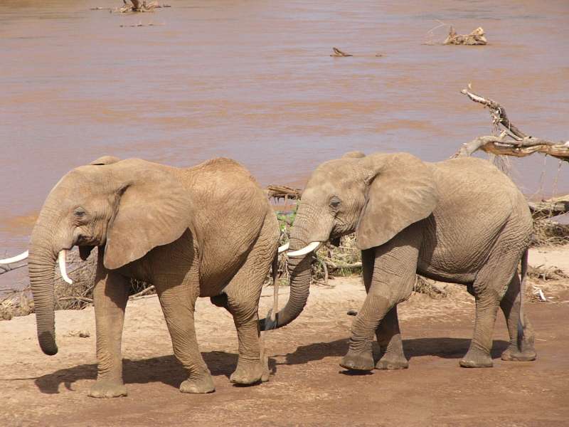 We often met elephants, because many of them had crossed the river to our side to escape the poaching on the other side, closer to Isiolo. Since the only bridge over the river in this area was destroyed again by a flood, the poachers tend to stay on the other side, where there are fewer tourists.