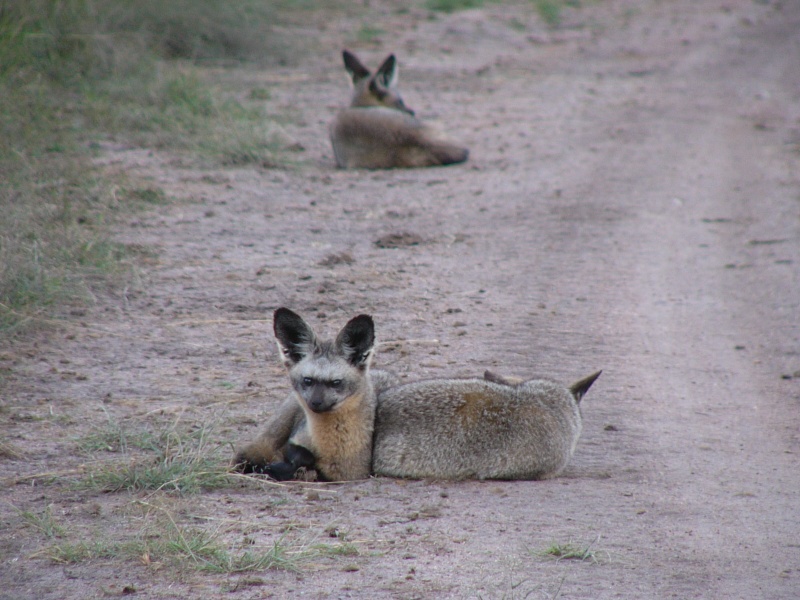 In the afternoon we drove out again and mapped a few tracks. Still no big predators, but we found some bat-eared foxes again that were not as shy as most of them are. They were apparently father, mother, and one child. We spent a good part of the afternoon with them, watching them and taking photographs.