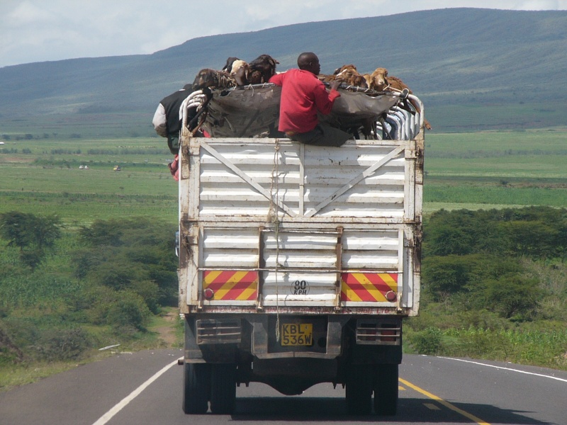 Along the way we saw two trucks who carried shoats (Remember? Sheeps and goats) tied down on top of their canvas canopy.