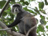 The Sykes' monkeys showed me what they can do much better than the vervets—making huge jumps from branch to branch and from tree to tree. They often make a long jump for a hanging twig, which often bends down as if it would tear, but all the jumps I observed, even by a mother with a child clinging to her belly, were successful.
