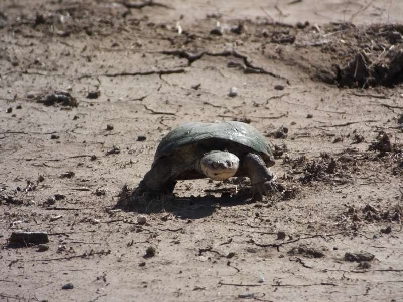 So we turned back and tried an entrance on the other side, about 600 m to drive. On that side there were fresh tracks, so we knew already that the camp was used. But the area became wetter, the deeper we drove in. 300 m before reaching the camp we could not go on any further, because a whole large area was too muddy for us to cross. The smaller wheels of our car and our lack of experience with this particular track made it too risky for us to continue.