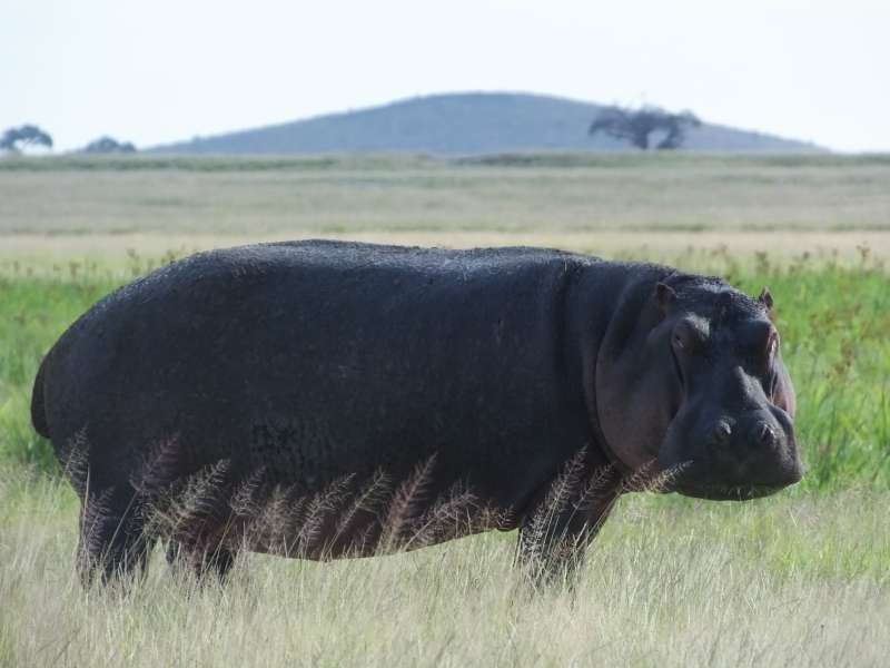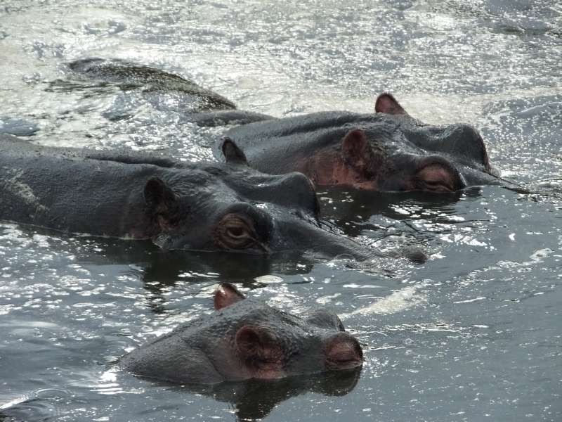 After lunch, of which I ate only the main course (spaghetti) and did not even finish that, I drove to Mzima Springs, a huge source of fresh water in the middle of the dry lands of Tsavo. The spring delivers a cubic meter of water every few seconds and feeds a chain of lakes.