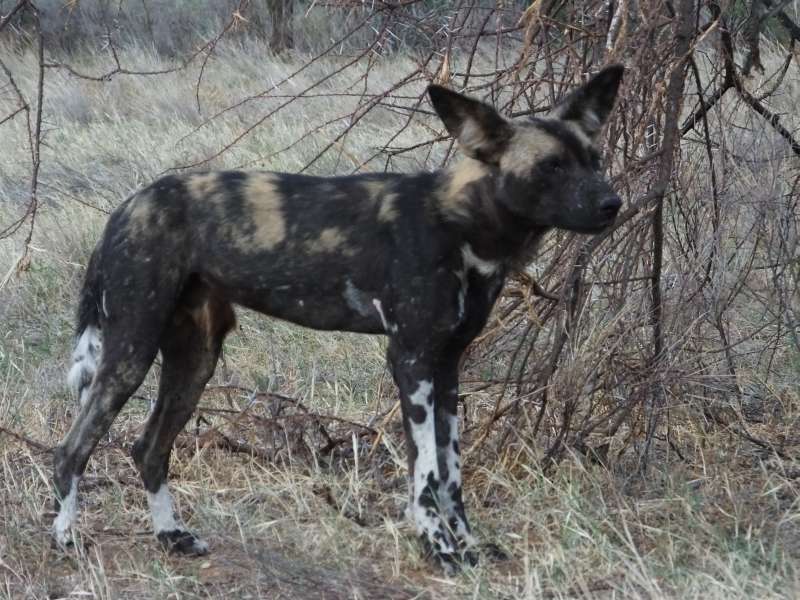 Since it had rained in that area the night before, driving was difficult. We had to cross a couple of small rivers and could not take any considerable risk of getting stuck in this more remote area, but we reached the entrance to the bushy area in which the camp was located. But the last small creek was unpassable, and the track had apparently not been used recently.