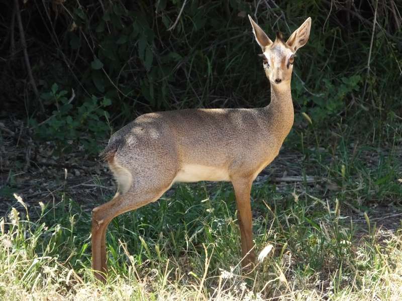 Near the underwater tank, from which one can observe the fish and sometimes hippos in the water, I watched a group of vervet monkeys and was surprised that some of them were very dark-colored. A closer look revealed that those were Sykes' monkeys, a different species.