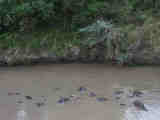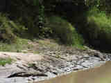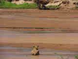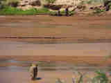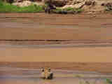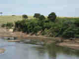We found the Lookout hill easily and stored its coordinates and the way there for later use. But scanning for wildebeest proved unsuccessful. The numbers of wildebeest we had seen already in the days before were significant, but not very high. They mean that a small fraction of all migrating wildebeest had crossed the Mara, but most were still to follow, but apparently not today. So we made the best of it, drove down to the river and followed it in a northerly direction, i.e. upstream towards its tributary Talek.