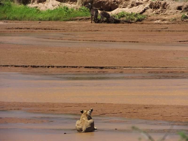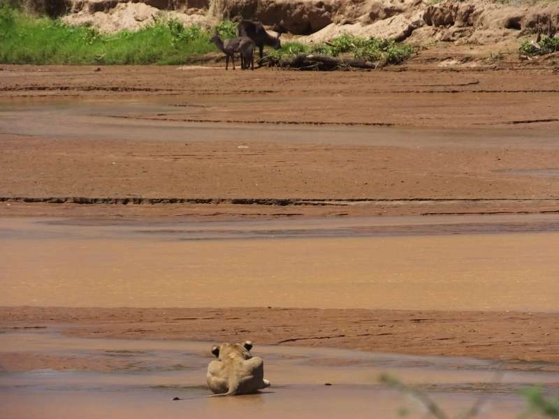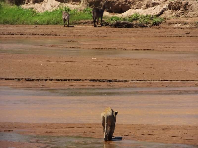 Samburu was a special case this year, because the bridge connecting the Samburu and Buffalo Springs nature reserves had been swept away by floods twice. Since Samburu has long been the reserve favored by tourists and without the bridge crossing over was impossible, there were hardly any tourists in Buffalo Springs. This led to the entire Buffalo Springs reserve being used as a large cattle, goat, and sheep ranch. Conflicts with large predators were unavoidable, and herders have killed lions inside the Buffalo Springs nature reserve.