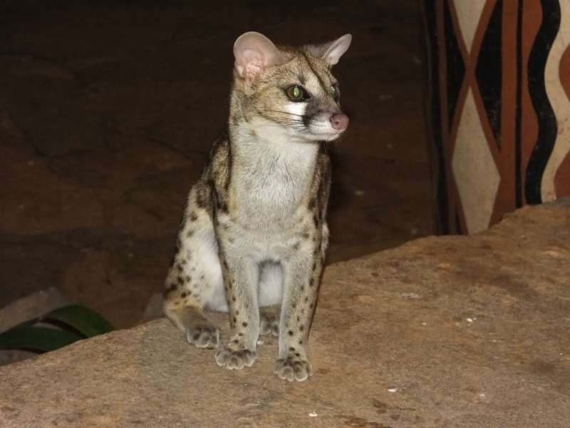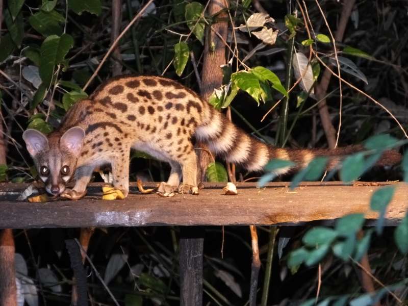 We got back to our camp in time for dinner, and afterwards saw this genet cat, lured into the lodge compound by some tasty food, particularly some meat and bananas.