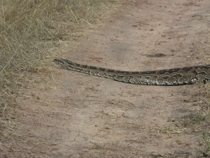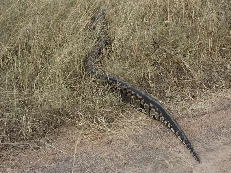 We found the way easily and stopped occasionally for interesting wildlife. The most interesting this morning was a 3 m long Python, slowly crossing our path.