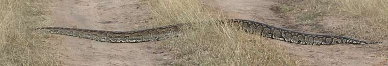 After the python had slowly crawled into the grass, we turned the car alongside it to take a few more photos, more or less from above, out of the car window. But then the most peculiar thing happened, which we still do not understand.