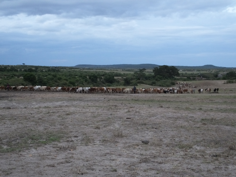 In Amboseli, Samburu/Buffalo Springs, and Masai Mara huge numbers of livestock are regularly inside the nature reserves. The pictures above show the situation in Masai Mara, where cattle are driven into the reserve every night, trampling and eating bare large areas that are normally covered with dense grass. Apparently to appease the tourists they are driven into the reserve in the evening and often, but not always, driven out again before sunrise.