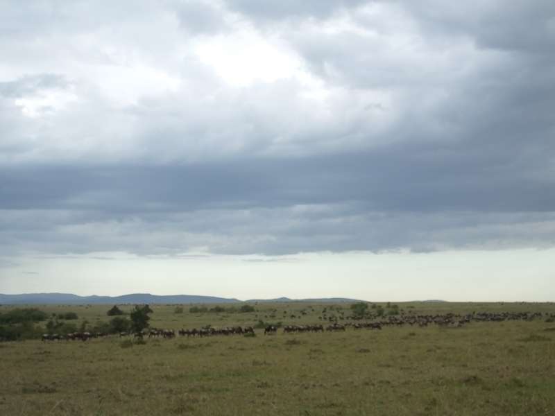 He explained how to find the wildebeest river crossings. On the side south of the river Talek the best strategy is to drive up the highest hill in the area, called Lookout, and scan the river Mara from there for congregations of wildebeest on the other side. Then one drives to that place and waits for the wildebeest to cross.