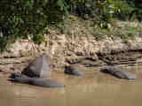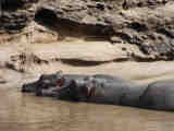 These hippos sunbathed directly in front of our tent.