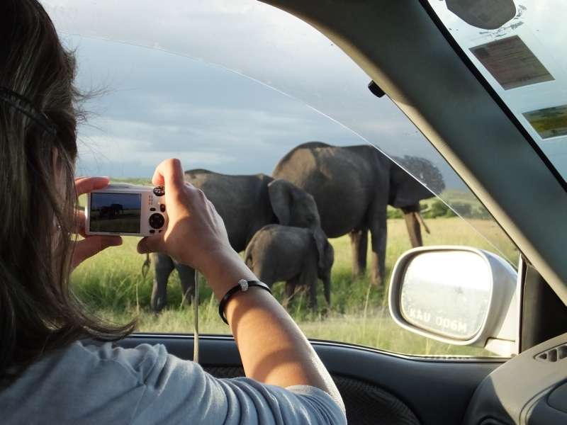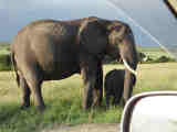These elephants established a new record. The matriarch approached our car and passed behind it at a distance of one meter (3 ft). Even the Amboseli elephants that are very used to tourist cars usually keep a 2 m distance.