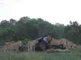 On this day I also found out that I had underestimated the size of a full-grown hippo bull. We drove to the hippo carcass and found a pride of lions, two males and four females, all adult, as well as an increasing number of other animals that wanted a share but were relentlessly chased away by the lions. Even today much of the hippo had not yet been eaten, partly beause the lions could not eat it all, but still prevented the others from eating it. Here is a collection of photos taken near the hippo carcass.