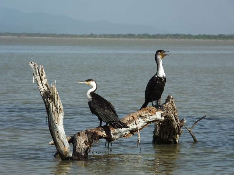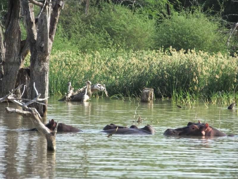 This is a sweet water lake, so it has hippos and crocodiles. And there are many birds, over 500 species have been recorded in the area.