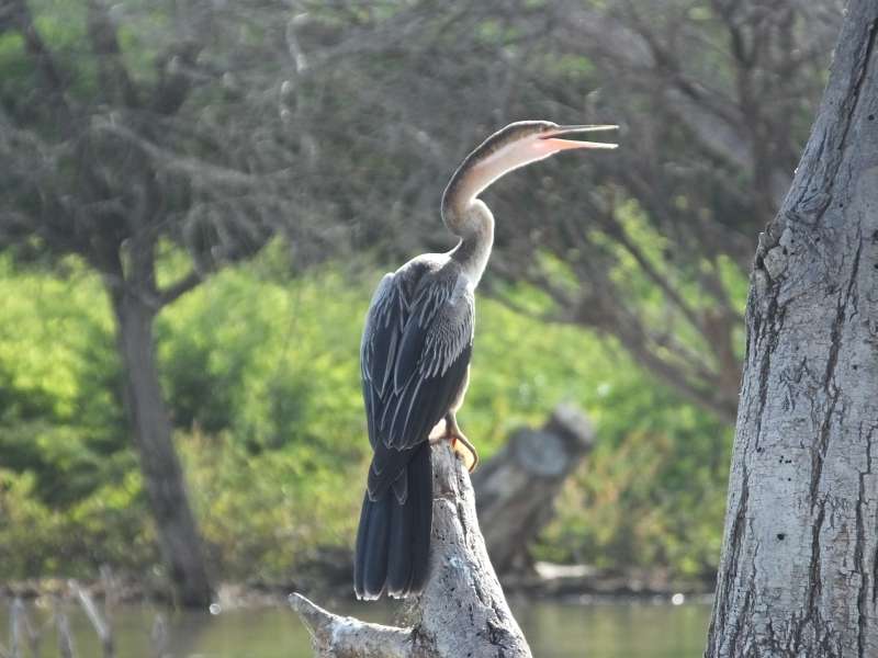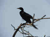 African darter; kingfisher; crocodile; black cormorant; crocodile floating;