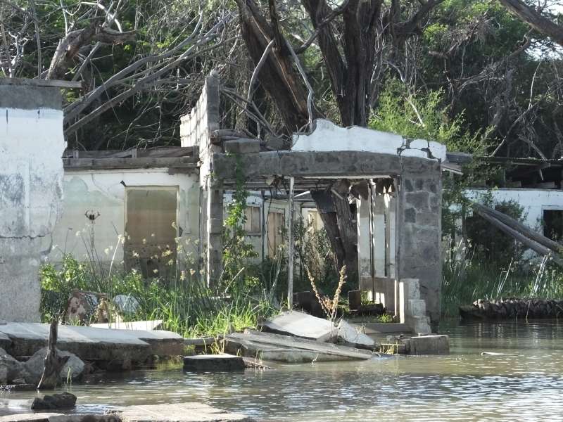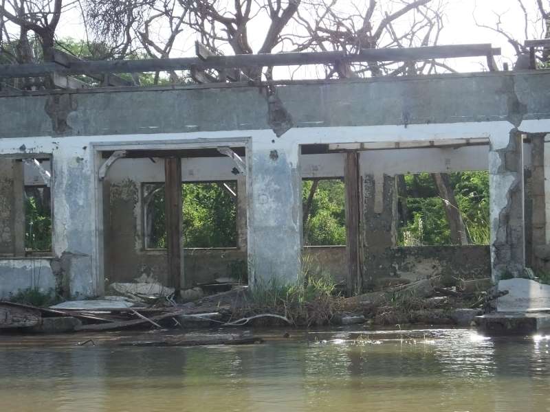 The skeleton of a house we had spent a night in years ago and that was now deep in the water still had a roof and was now used as a sleeping place for bats during the day.