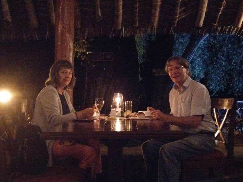 Run-in selfie of our candle-light dinner in the open-air dining room of the Samburu Lodge