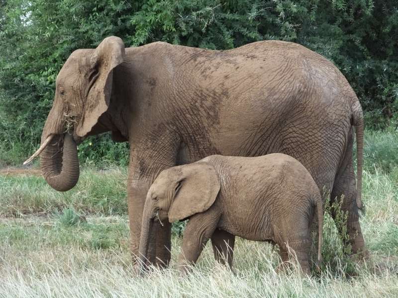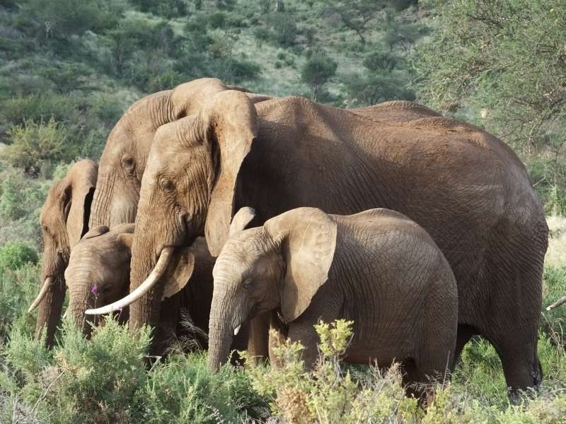 Waterbuck; elephant mother with child; Cory bustard; male gerenuk; gerenuk