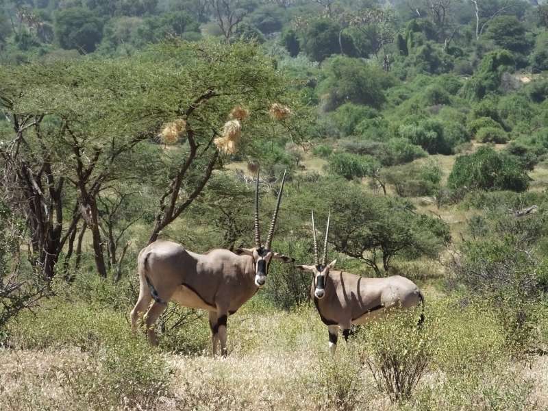 We went on for a little drive back on the Samburu side, up into the hills, and saw these Oryx antelopes:
