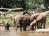 Elephant bull; elephants bathing and drinking