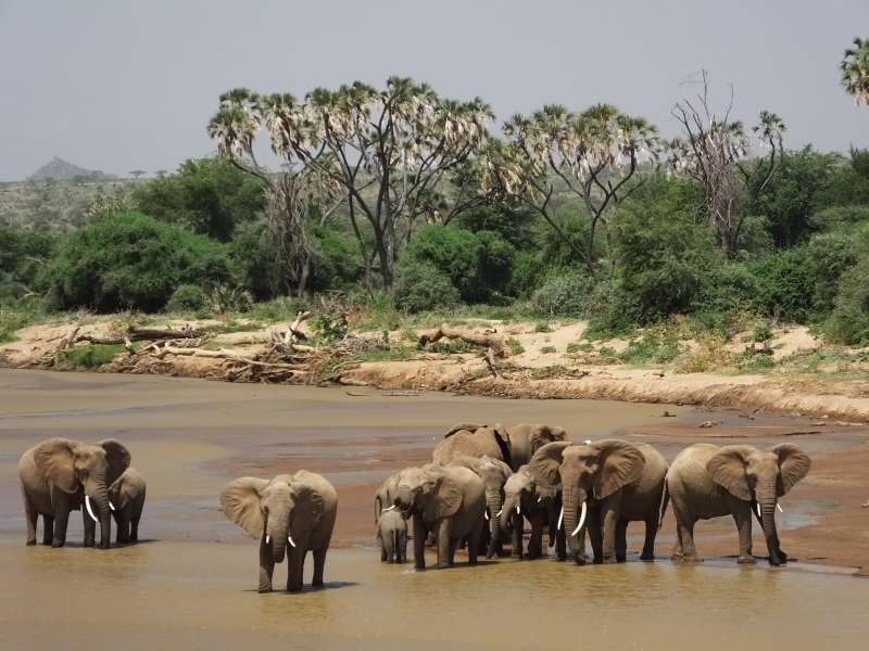 Elephants and crocodiles in Samburu River