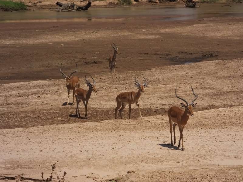 Finally we turned into the stony and sandy bush savannah of the Samburu country, saw quite a few wild and some domesticated animals, even a few camels, and drove down to the river towards the West Gate of Samburu. There we had to pay a moderate entry fee and continued for the last hour of our way to Samburu Lodge (officially called Samburu Game Lodge, but we do not like the word game because of its hunting association).