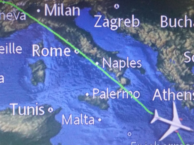 Unfortunately most of the flight, particularly past Italy and over the Mediterranean Sea we flew above clouds and could not see much. I would have liked aerial photographs of Rome and Naples.