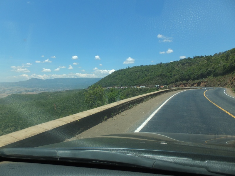 We continued on the A104 road, which also has four lanes up to the turnoff to Mai Mahiu and Naivasha, but is otherwise not as good. Because we had ample time and I wanted to check the road through Naivasha, we turned off as if going to Masai Mara, and drove down the steep slope of the Great Rift Valley.