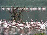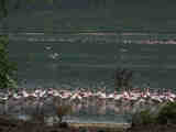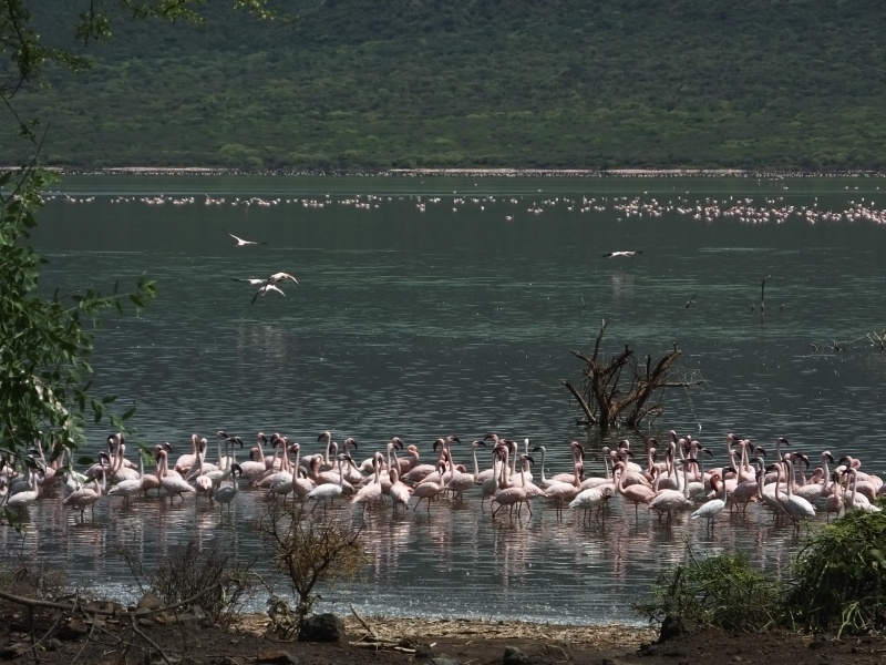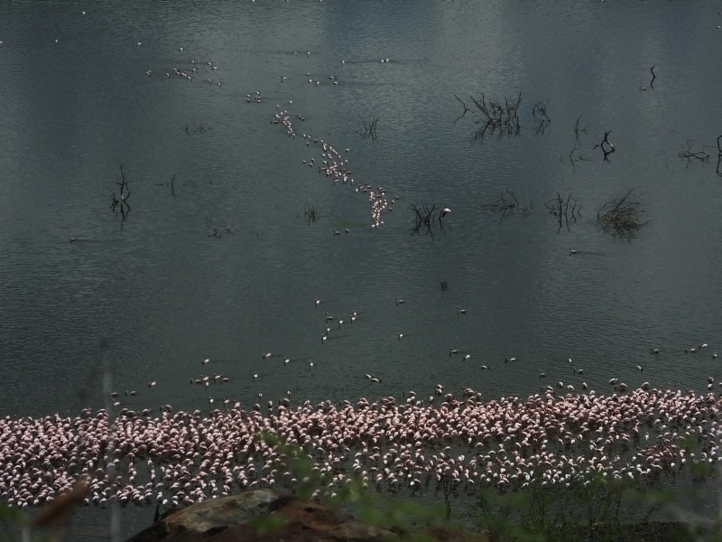 After a good night's sleep, in spite of the rather weak air conditioning system, we had a nice breakfast and then jumped into Michael's big Land Cruiser for a drive along Lake Bogoria. There were quite a few flamingos in the lake.