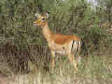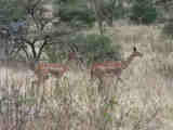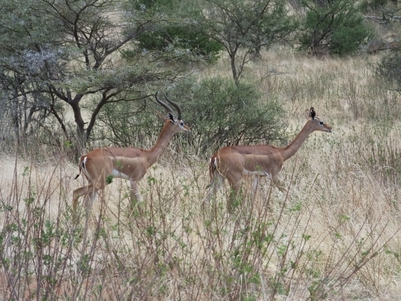 Nearby we met several gerenuks (German: Giraffengazelle), and we repeatedly saw flocks of vulture-headed guinea fowls.